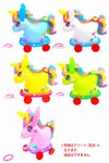 どこでもコロコロ一緒におさんぽ♪ピカピカ光る、タイヤ付のかわいいユニコーンのビニール玩具です。