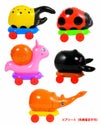 かたつむりやテントウムシ、カブトムシなど昆虫デザインのエアで膨らむヒモ付きお散歩おもちゃです。