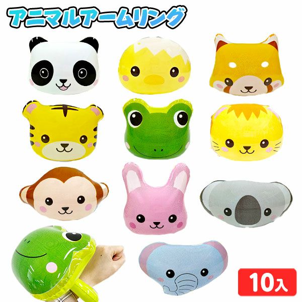 アニマルアームリング 10個入 不良返品不可{ エア玩具 ビニール玩具 ビニールおもちゃ アニマル アームリング 動物 顔 }{ 景品 人気 子供 子供会 縁日 お祭り 夏祭り 空気ビニール ビニール おもちゃ エア玩具 }[25K20]