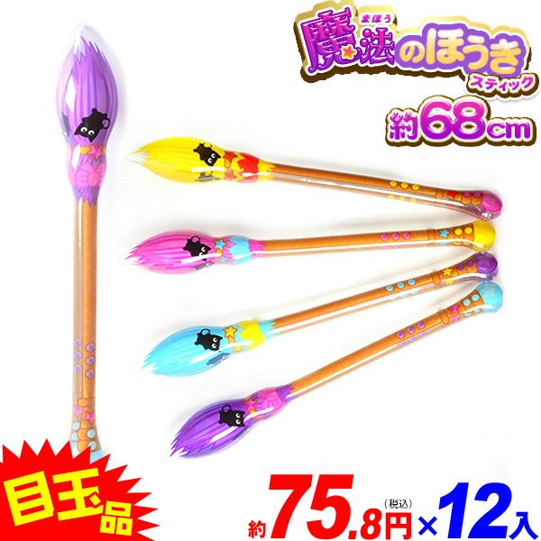 約68cmのロングサイズ!ハロウィンの定番、小さなカワイイ魔女さんにもオススメな魔法のステッキみたいなほうきのスティック★☆おっきなリボンと黒猫がキュート!