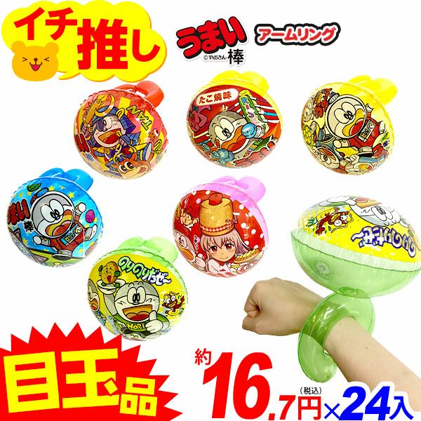 他の画像を見る 1個あたり約15.2円(約16.7円税込)x24個入=364円(400円税込)あのうまい棒がアームリングに! うまい棒 アームリング 24個入 不良返品不可{ エア玩具 ビニール玩具 ビニールおもちゃ うまい棒 アームリング 人気 }{ 景品 子供 ビニール おもちゃ 子供会 縁日 お祭り 夏祭り イベント }[25H23] メーカー希望小売価格 オープン価格 のところ 当店特別価格 ¥ 400 税込 カートに入れる お気に入りに登録する
