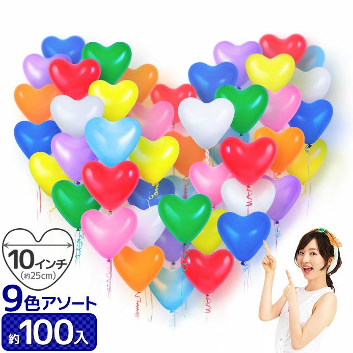 10インチ(風船幅 約25cm)の色鮮やかなハイクオリティバルーン。※注意:ハート型風船及び変型タイプの風船は、メーカーを問わず、ラウンド(丸型)に比べ、割れる確率が高いです。