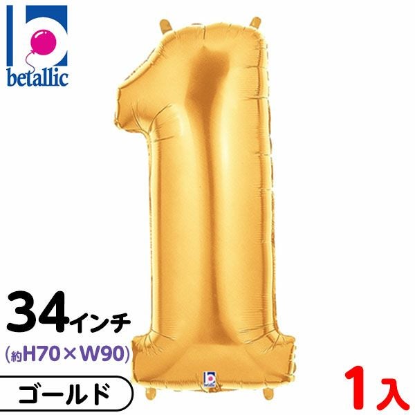 7. 【1枚販売】 34インチ レターバルーン ゴールド 1 { 風船 バルーン 誕生日 バースデー 数字 大きい メタリック 金 かわいい おしゃれ オシャレ シンプル }{ 風船 バルーン ディスプレイ デコレーション 装飾 イベント パーティー お祝い 記念日 }[25E30]