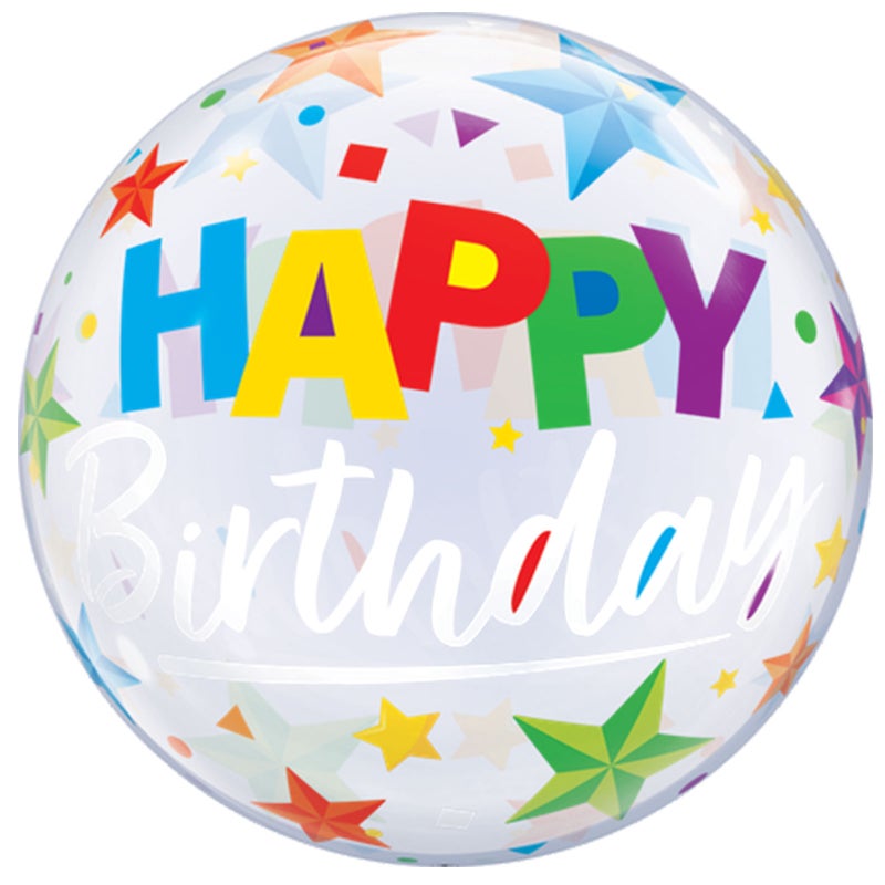 5. 22インチ バブル バースデー ブリリアントスターズ { かわいい おしゃれ 半透明 フィルム 男の子 女の子 }{ イベント パーティー 誕生日 バースデーバルーン 装飾 飾り デコレーション 記念日 プレゼント サプライズ お祝い 子供 }[26C04]