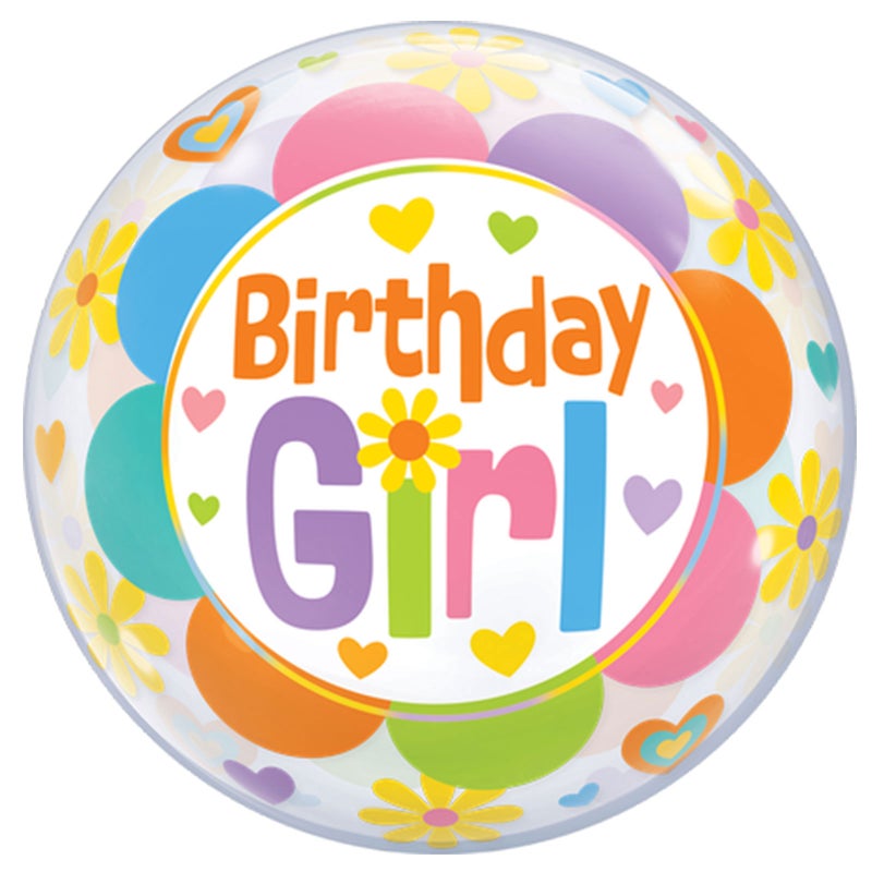 5. 22インチ バブル バースデー ガールフラワーズ { かわいい おしゃれ 半透明 フィルム 女の子 お花 }{ イベント パーティー 誕生日 バースデーバルーン 装飾 飾り デコレーション 記念日 プレゼント サプライズ お祝い 子供 }[26C04]