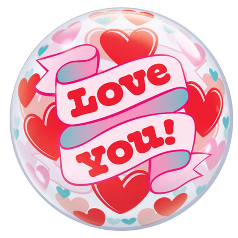 6. 22インチ バブル ラブユーハーツ&リボン { かわいい おしゃれ 半透明 フィルム ハート 好き メッセージ 女の子 }{ イベント パーティー 誕生日 バースデーバルーン 装飾 飾り デコレーション 記念日 プレゼント サプライズ お祝い 子供 }[26C04]