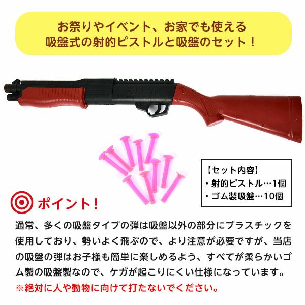 他の画像を見る 射的気分を気軽に楽しめる!!安心・安全な吸盤タイプ 射的銃 吸盤タイプ 弾10個付 { 景品玩具 射的 吸盤 ゴム 射的セット }{ 抽選用品 子供会 景品 お祭り くじ引き 縁日 露店 屋台 あてくじ アテクジ クジ くじ くじびき 当てくじ 当てクジ }[24A25]{即日出荷 配送区分D} メーカー希望小売価格 オープン価格 のところ 当店特別価格 ¥ 235 税込 カートに入れる お気に入りに登録する