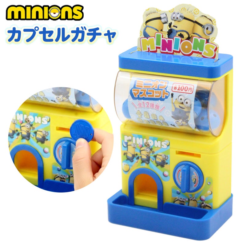 コインを入れてレバーを回すと本格的にカプセルが出てくる!どのミニオンズが出てくるかはお楽しみ!ミニオンズの人気キャラクターおもちゃ。誕生日プレゼントやお祝いのギフト、夏祭りや縁日の景品に最適です。