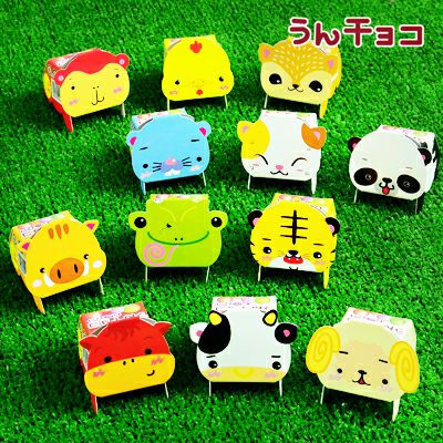 カラフルな色つきの「うんチョコ」を、動物たちのおしりにある「でぐち」から出して食べよう!動物柄のケースはとってもかわいい12種類♪出てきた「うんチョコ」の色によって、あなたの運気が上がるかも!?