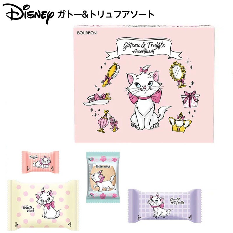 ディズニーデザインのショコラミルフィーユ、ホワイトラスク、バタークッキー、トリュフの4種類の洋菓子が入った期間限定のアソート商品です。