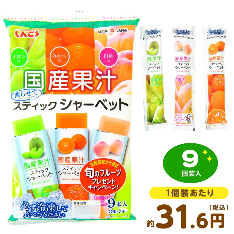 スティックシャーベット メロン・みかん・白桃 9個装入