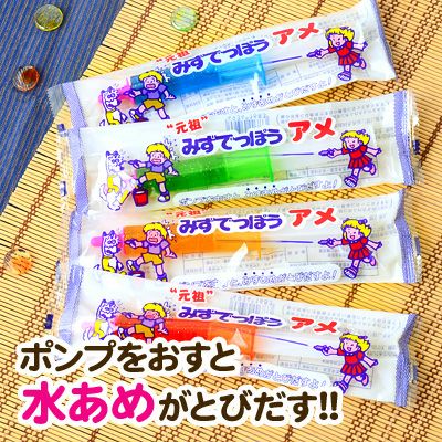 ポンプを押すと、水あめが飛び出すよ!