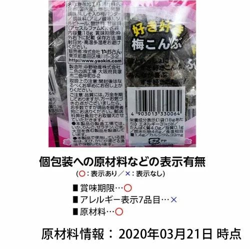 他の画像を見る 1個装あたり42.5円(45.9円税込)x20個装入=850円(918円税込) やおきん 好き好き梅こんぶ 20個装入 { 駄菓子 お菓子 梅こんぶ 梅昆布 梅コンブ おつまみ 父の日 宅飲み 家飲み }{ 子供会 景品 お祭り くじ引き 縁日 販促 配布 夏祭り 幼稚園 保育園 問屋 }[23F01] メーカー希望小売価格 ¥ 1,080 のところ 当店特別価格 ¥ 918 税込 カートに入れる お気に入りに登録する
