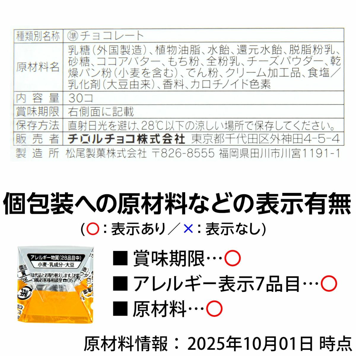 他の画像を見る 単価36.6円(約39.5円税込)x30個入=1098円(1186円税込)今までにない食感の『生もち』×チーズ系チョコ 【賞味期限2026年2月25日】 チロル 生もちチーズ 30個入 { 駄菓子 お菓子 限定 チーズ もち 生もち お餅 チョコ チョコレート }{ おかし おやつ 景品 お祭り 夏祭り 縁日 問屋 子供 子供会 自治会 詰め合わせ 大量 イベント 配布 }[25L29][dmo] メーカー希望小売価格 ¥ 1,393 のところ 当店特別価格 ¥ 1,186 税込 販売期間 2025/12/29 0:00 〜 2026/02/11 7:30 詳細を見る お気に入りに登録する