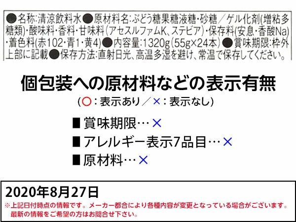 他の画像を見る 1本あたり約24.8円(約26.8円税込)x24本入=595円(643円税込) ぐるぐるゼリー 24本入 { 駄菓子 お菓子 ゼリー 果汁ゼリー フルーツ ラムネ スティック 棒 ぐるぐる 螺旋状 人気 }{ 子供会 景品 お祭り くじ引き 縁日 販促 配布 夏祭り 幼稚園 保育園 問屋 }[25B04][dmo] メーカー希望小売価格 ¥ 756 のところ 当店特別価格 ¥ 643 税込 カートに入れる お気に入りに登録する
