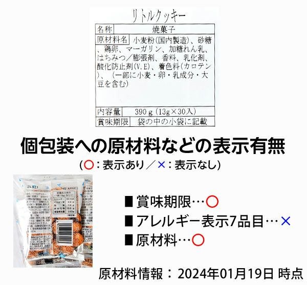 他の画像を見る 1個装あたり25.5円(約27.5円税込)x30個装入=765円(826円税込)お子様に人気♪ひと口サイズの食べやすいクッキー リトルクッキー 30個装入 { 駄菓子 お菓子 クッキー ビスケット スナック }{ 駄菓子 お菓子 おかし おやつ 景品 お祭り 縁日 問屋 子供 子供会 自治会 お子様ランチ 詰め合わせ 大量 まとめ買い 保育園 幼稚園 パーティー イベント 配布 }[24A19] メーカー希望小売価格 オープン価格 のところ 当店特別価格 ¥ 826 税込 カートに入れる お気に入りに登録する