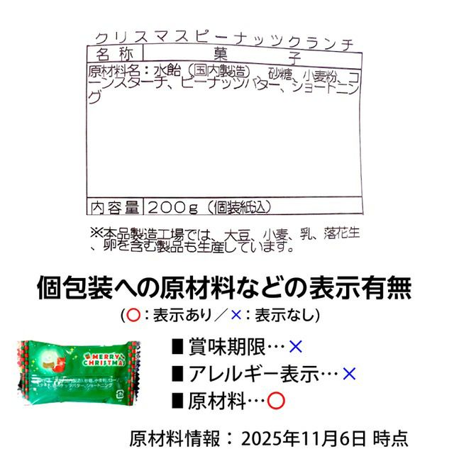 他の画像を見る 1個装あたり約13.3円(約14.3円税込)x約40個装入=530円(572円税込)クリスマス 2025 お菓子 ピーナッツ風味のサクサククランチ クリスマス ピーナッツクランチ 200g(約40個装入) { クリスマスお菓子 クリスマス お菓子 個包装 子供 クランチ }{ クリスマス 2025 おかし お菓子 サンタクロース 子供会 クリスマス会 詰め合わせ 配布 }[25L06][dmo]{即日出荷 配送区分D} メーカー希望小売価格 オープン価格 のところ 当店特別価格 ¥ 572 税込 在庫切れ カートに入れる お気に入りに登録する