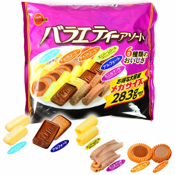6種類のいろいろな味が楽しめるお得なメガサイズのバラエティミックス!