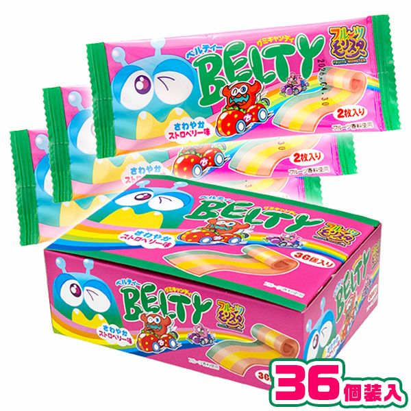 ベルトみたいなカラフルグミストロベリー風味のグミシート2枚入りです。