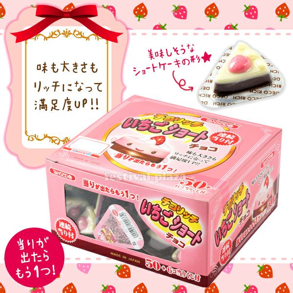 他の画像を見る 1個装あたり22円(約23.8円税込)x50個装入=1100円(1188円税込) デコリッチ いちごショートチョコ 50個装入 { 駄菓子 お菓子 チョコレート チョコ 大量 当たりくじ付 }{ 子供会 景品 お祭り くじ引き 縁日 販促 配布 夏祭り 幼稚園 保育園 問屋 }208[25J27][dmo]{即日出荷 配送区分D} メーカー希望小売価格 ¥ 1,350 のところ 当店特別価格 ¥ 1,188 税込 カートに入れる お気に入りに登録する