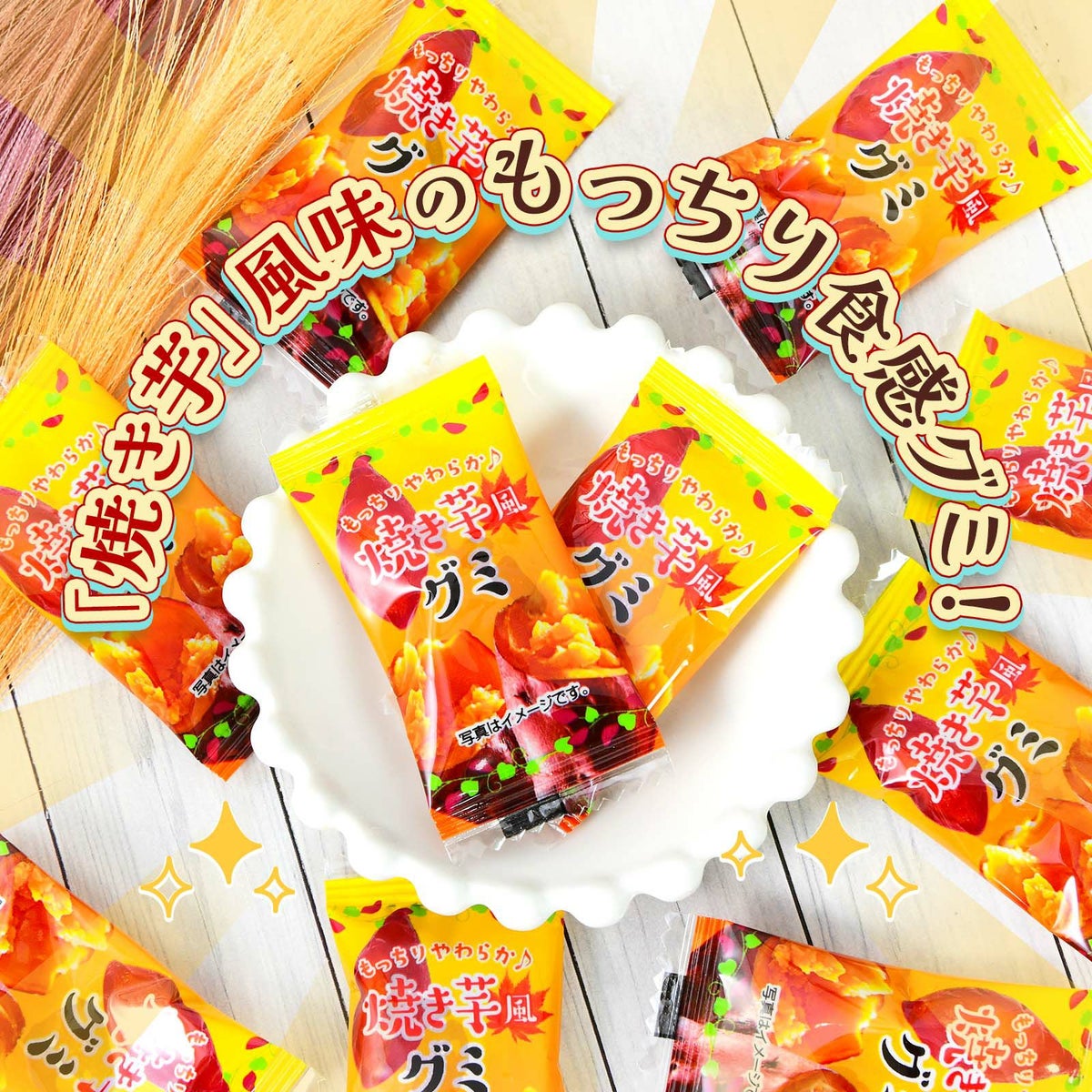 他の画像を見る 単価8.5円(約9.2円税込)x50個装入=425円(459円税込)秋の味覚「焼き芋」風のおいしいグミ 焼き芋風 グミ 50個装入 { 駄菓子 お菓子 いも 芋 焼いも 焼イモ やきいも グミ 秋 }{ おかし おやつ 景品 お祭り 夏祭り 縁日 問屋 子供 子供会 自治会 詰め合わせ 大量 イベント 配布 個装 }[25H13][dmo] メーカー希望小売価格 ¥ 540 のところ 当店特別価格 ¥ 459 税込 カートに入れる お気に入りに登録する