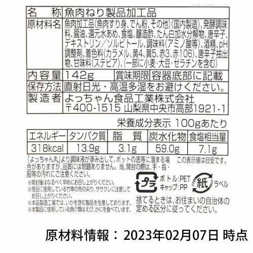 他の画像を見る 1本あたり約20.2円(約21.9円税込)x約42本入=850円(918円税込) よっちゃん食品 よっちゃん丸 142g(約42本入) { 駄菓子 お菓子 珍味 父の日 宅飲み 家飲み おつまみ }{ 子供会 景品 お祭り くじ引き 縁日 販促 配布 夏祭り 幼稚園 保育園 問屋 }[23C17] メーカー希望小売価格 ¥ 1,080 のところ 当店特別価格 ¥ 918 税込 カートに入れる お気に入りに登録する