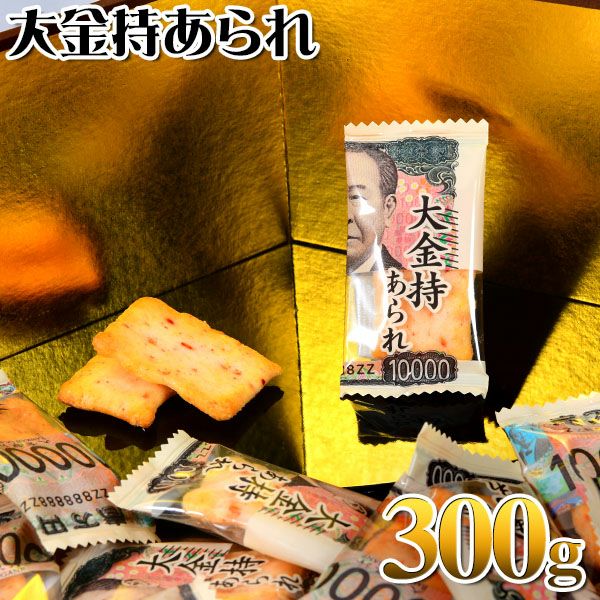 折りたたんだ一万円札ような見た目に個包装されたあられです。たくさん盛るとなかなかの大金持ち気分を味わえるかもしれません。
