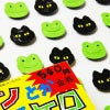 かわいい黒ネコとカエル型パッケージの中に、おいしいミンツとおもしろふき出しシールが入っています。駄菓子屋さん気分で盛り上がれる当たり付き♪