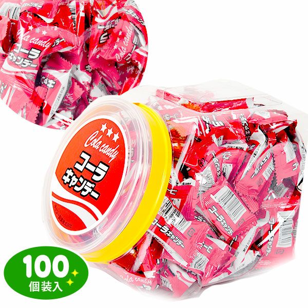 ポットの中に100個入りの大玉キャンディ人気のコーラ味の『大玉キャンディ』です。