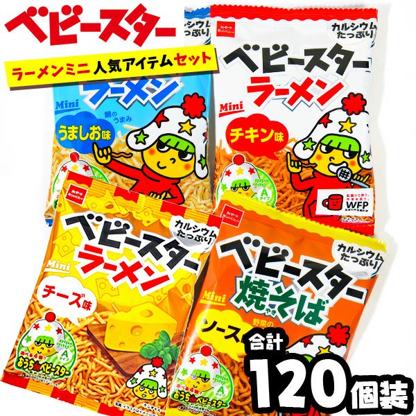 みんな大好き定番おやつ!ベビースターミニの人気の味が入った、お試し120個装パック!!