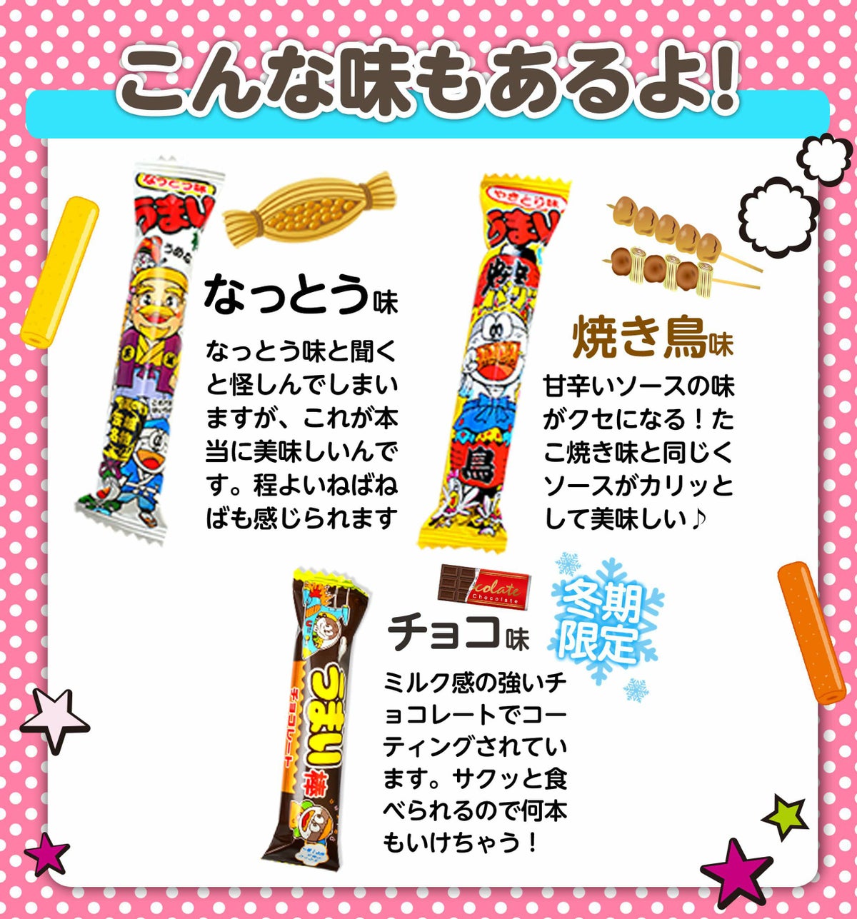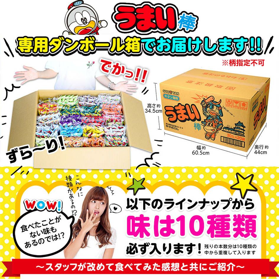 他の画像を見る 送料無料!! やおきん うまい棒 詰め合わせ セット 600本・1200本 味は10種類 { 駄菓子 お菓子 まとめ買い 大量 大人買い }{ 子供会 景品 お祭り 縁日 イベント 販促 配布 問屋 幼稚園 夏祭り }[26A29][dmo] 送料無料(※沖縄・離島発送不可) メーカー希望小売価格 オープン価格 のところ 当店特別価格 ¥ 7,998 税込 〜 当店特別価格 ¥ 税込 詳細を見る お気に入りに登録する