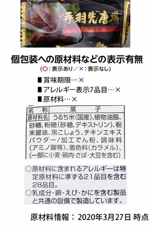 他の画像を見る 1個装あたり約15.6円(約16.9円税込)x約82個装入=1280円(1382円税込) 手羽先唐揚(甘辛あられ) 300g(約82個装入) { 駄菓子 お菓子 手羽先 あられ 大袋菓子 }{ 子供会 景品 お祭り 縁日 問屋 }[24J31] 大袋菓子 メーカー希望小売価格 オープン価格 のところ 当店特別価格 ¥ 1,382 税込 在庫切れ 再入荷お知らせ お気に入りに登録する