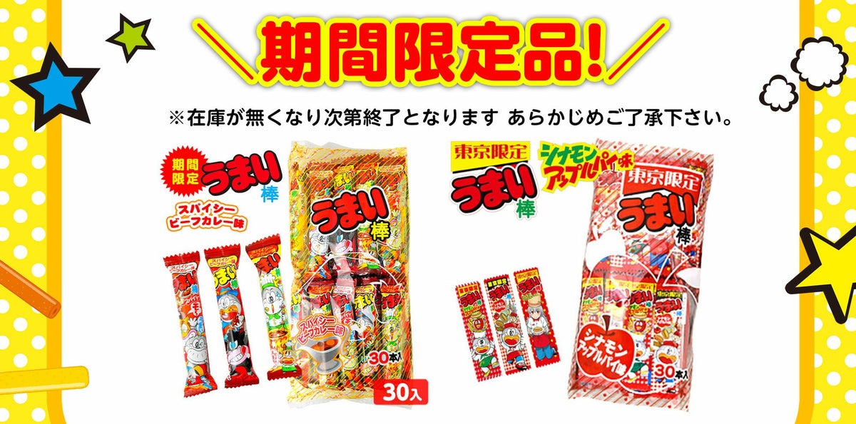他の画像を見る 送料無料!! やおきん うまい棒 詰め合わせ セット 600本・1200本 味は10種類 { 駄菓子 お菓子 まとめ買い 大量 大人買い }{ 子供会 景品 お祭り 縁日 イベント 販促 配布 問屋 幼稚園 夏祭り }[26A29][dmo] 送料無料(※沖縄・離島発送不可) メーカー希望小売価格 オープン価格 のところ 当店特別価格 ¥ 7,998 税込 〜 当店特別価格 ¥ 税込 詳細を見る お気に入りに登録する