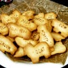 動物のかたちをしたビスケットには動物の名前が英語で書いてあります。