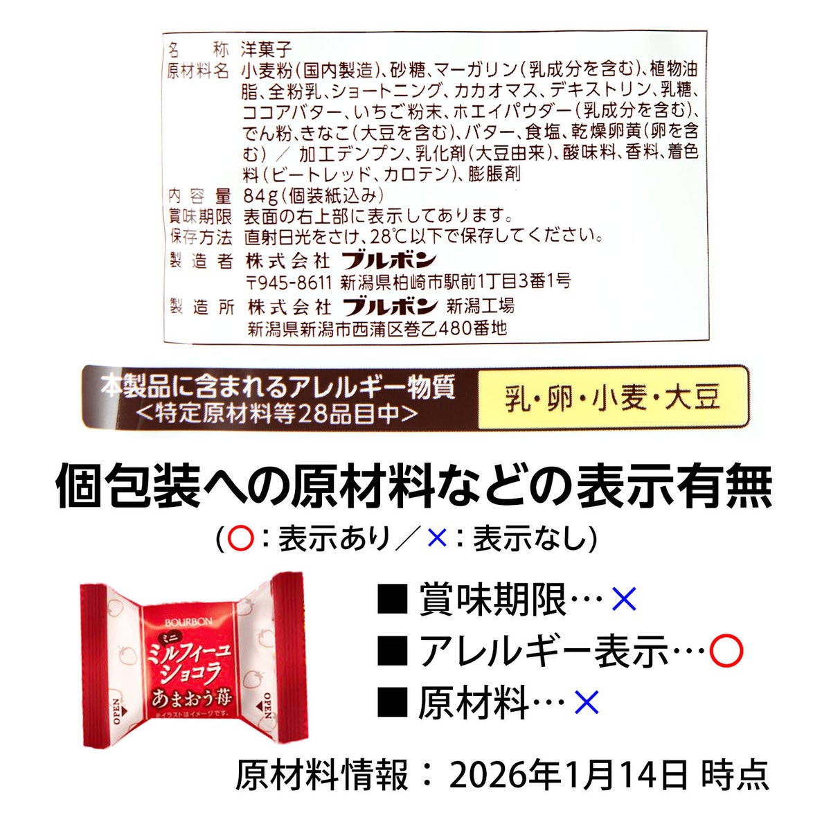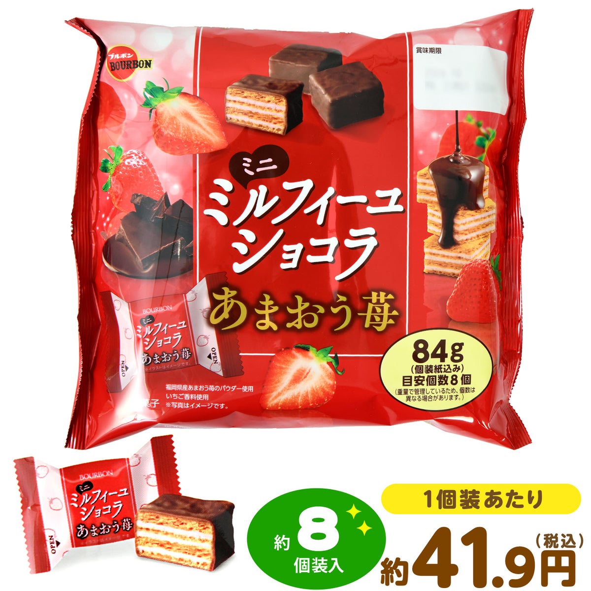 ブルボン ミニミルフィーユ ショコラ あまおう苺 84g(約8個装入)