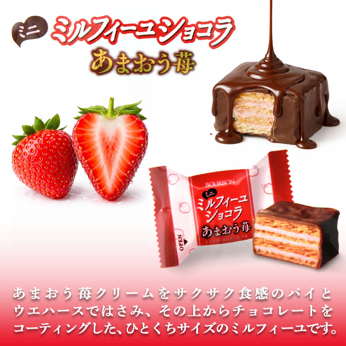 { 駄菓子 お菓子 限定 チョコ チョコレート いちご 苺 ミルフィーユ spring }{ おかし おやつ 景品 お祭り 夏祭り 縁日 問屋 子供 子供会 詰め合わせ 大量 イベント 配布 }[26C04][dmo]