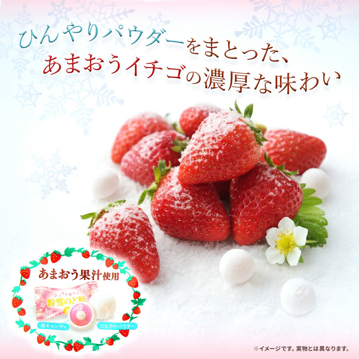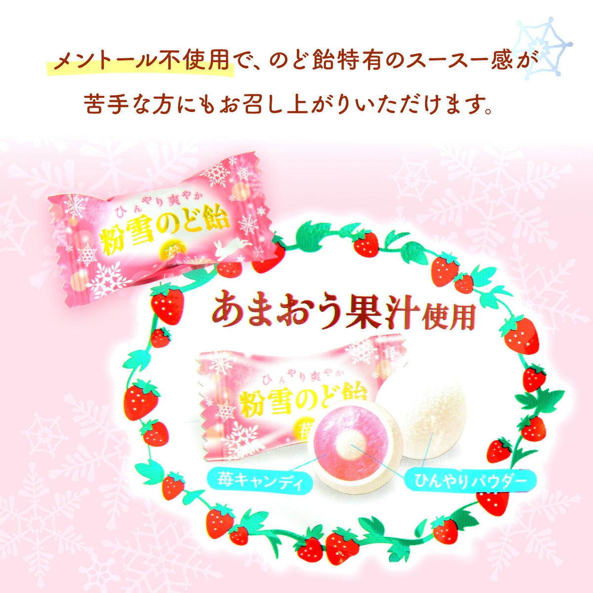 ひんやりパウダーをまとった あまおう果汁使用のいちごのど飴