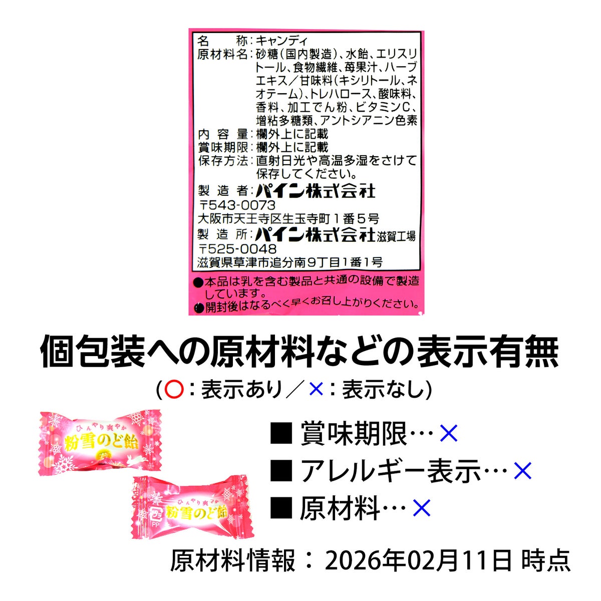 パイン 粉雪 のど飴 60g(約25個装入)