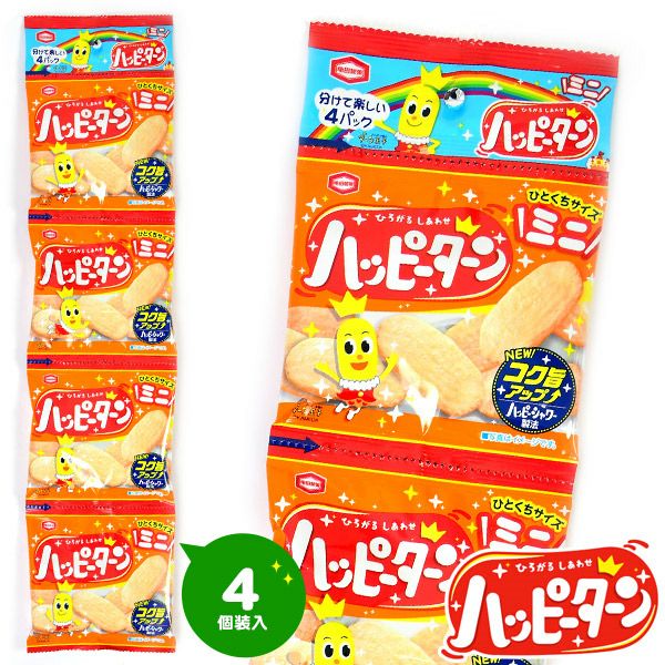 6. 亀田製菓 ハッピーターンミニ 4連 { 駄菓子 お菓子 ハッピーターン おせんべい こども 子供 個装 個包装 配布 イベント }{ おかし おやつ 子供 人気 パーティー 幼稚園 保育園 }[23J02]