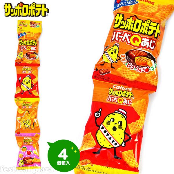 6. カルビー サッポロポテトバーベQあじ ミニ 4連 { 駄菓子 お菓子 カルビー スナック こども 子供 個装 個包装 配布 イベント }{ 子供会 景品 お祭り くじ引き 縁日 }[25I01][dmo]