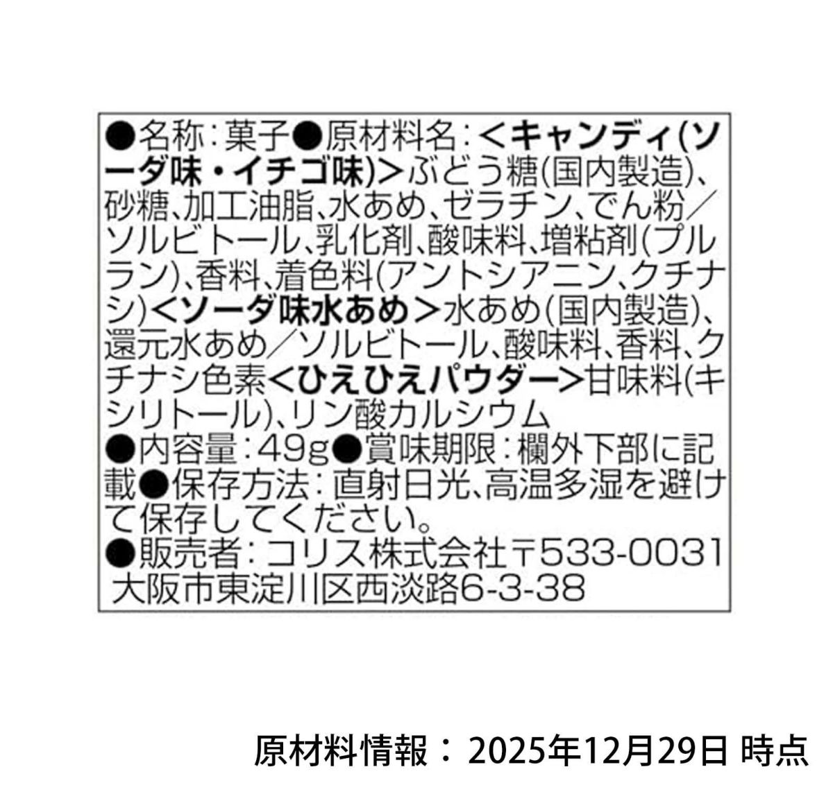 他の画像を見る 特徴の違う3種の水あめを混ぜて・・・味変確定!! コリス おかしな水あめ { 駄菓子 お菓子 作る 手作り 実験 おかし 水あめ 水飴 みずあめ 知育菓子 }{ 子供会 景品 お祭り くじ引き 縁日 個装 個包装 配布 }107[25L03][dmo] メーカー希望小売価格 ¥ 108 のところ 当店特別価格 ¥ 92 税込 カートに入れる お気に入りに登録する