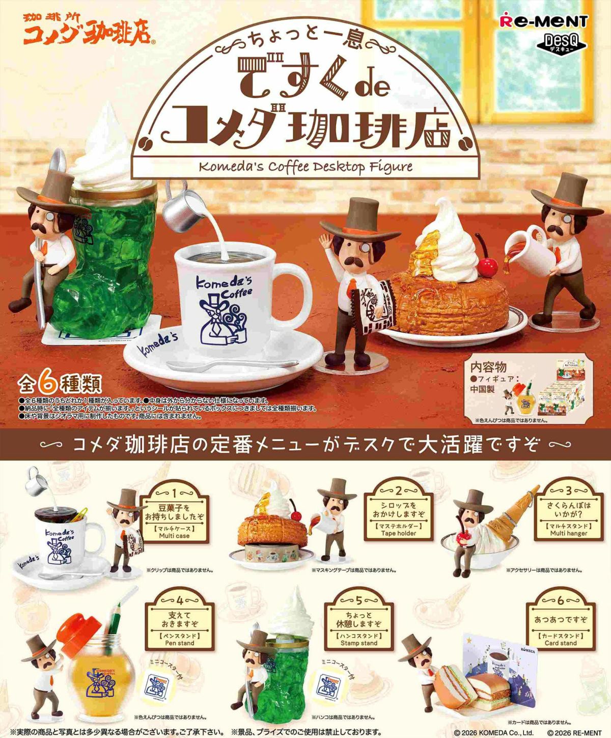 他の画像を見る 1個装あたり840円(924円税込)x6個装入=5040円(5544円税込)全6種 コンプリート(全種類のアイテムが揃います。) リーメント ちょっと一息 ですくdeコメダ珈琲店 6個装入 { 食玩 景品玩具 コメダ コーヒー }{ おもちゃ オモチャ 玩具 フィギュア コレクション コンプリートセット ギフト プレゼント }[26A24][dmo]{即日出荷 配送区分D} メーカー希望小売価格 ¥ 7,920 のところ 当店特別価格 ¥ 5,544 税込 在庫切れ 再入荷お知らせ お気に入りに登録する