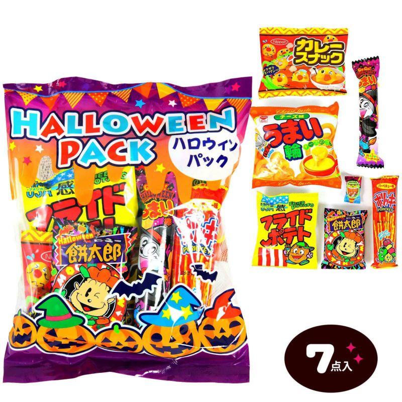 『やおきん』の人気の駄菓子やハロウィン菓子7点が入った人気の詰め合わせパックです。