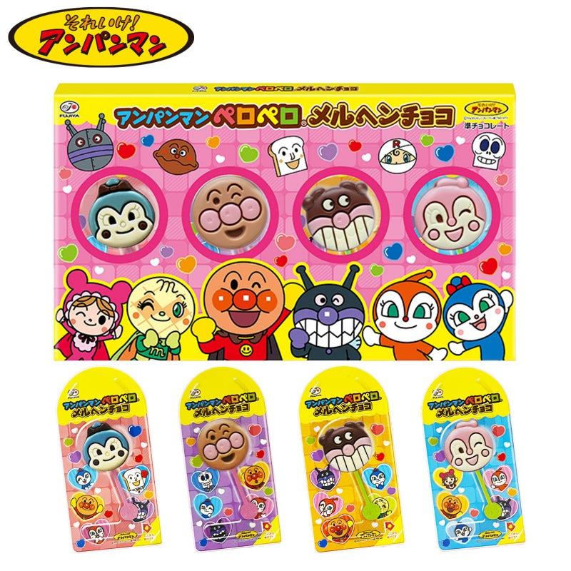 アンパンマンとなかまたちの可愛い棒付きチョコの詰め合せです。