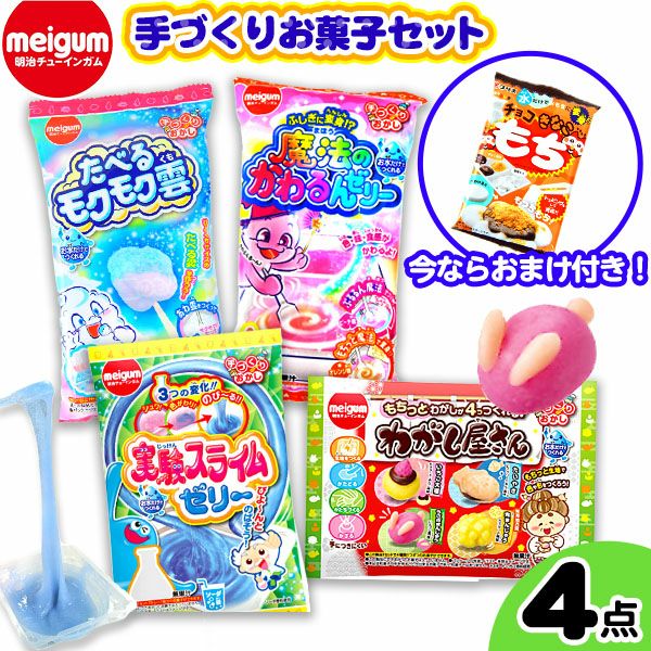 「身近にあるお菓子を美味しく楽しく簡単に作れる」明治チューインガムの知育菓子4点セット!!合成着色料・保存料不使用で、安心・安全にお作りいただけます。
