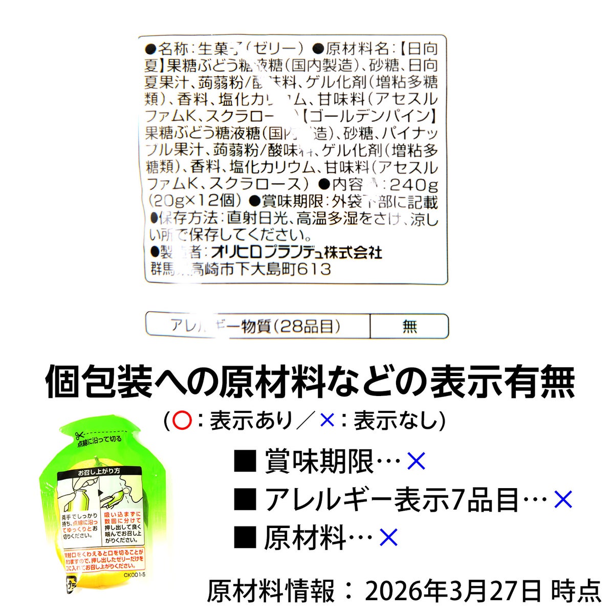 他の画像を見る 1個装あたり約18.8円(約20.3円税込)x12個装入=225円(243円税込)期間限定!しっかり果汁感☆やみつき食感 オリヒロ ぷるんと蒟蒻ゼリー 日向夏・ゴールデンパイン 12個装入 { 駄菓子 お菓子 蒟蒻 ゼリー パイン 日向夏 }{ おかし おやつ 景品 お祭り 夏祭り 縁日 問屋 子供 子供会 自治会 詰め合わせ 大量 イベント 配布 個装 }[26C26][dmo] メーカー希望小売価格 ¥ 286 のところ 当店特別価格 ¥ 243 税込 カートに入れる お気に入りに登録する