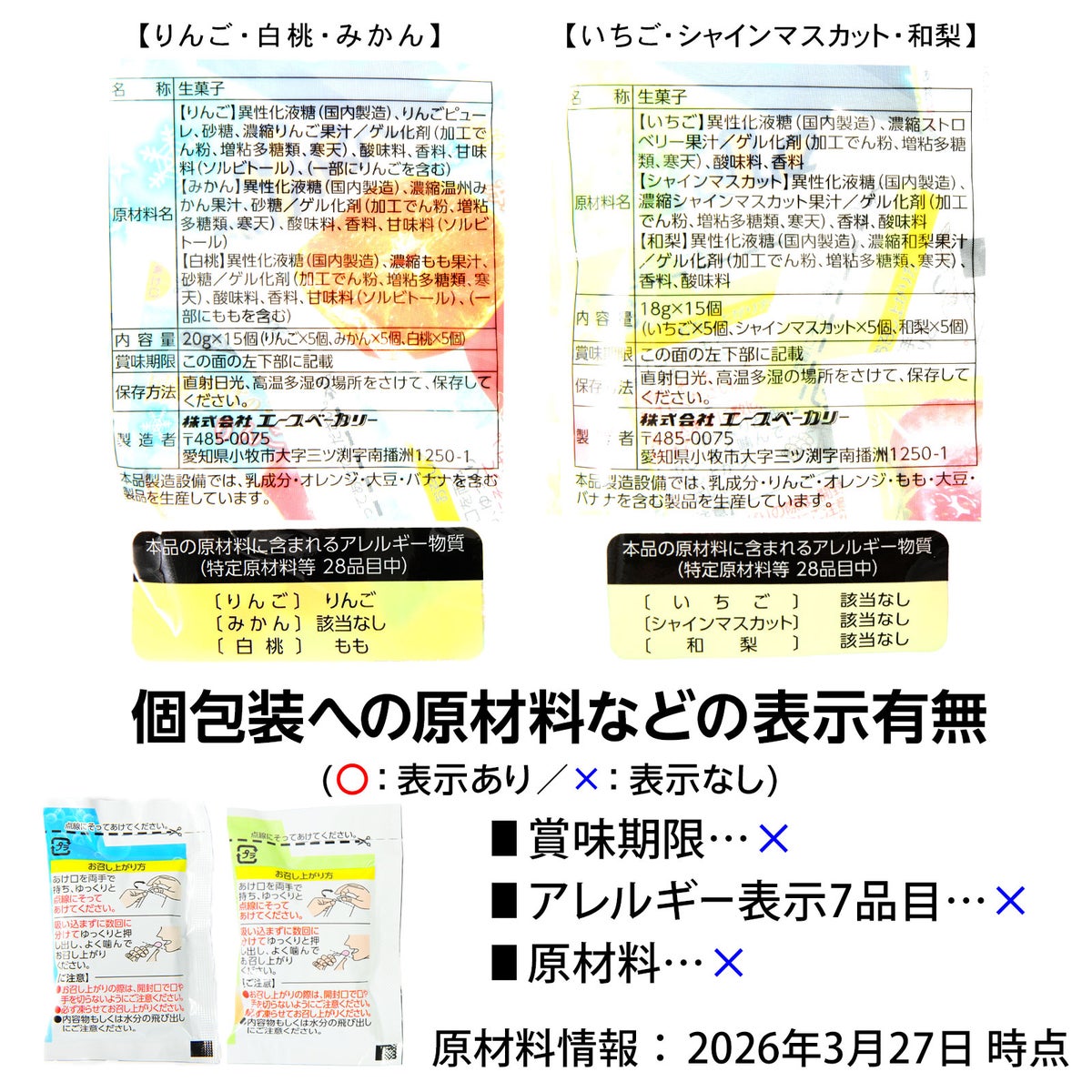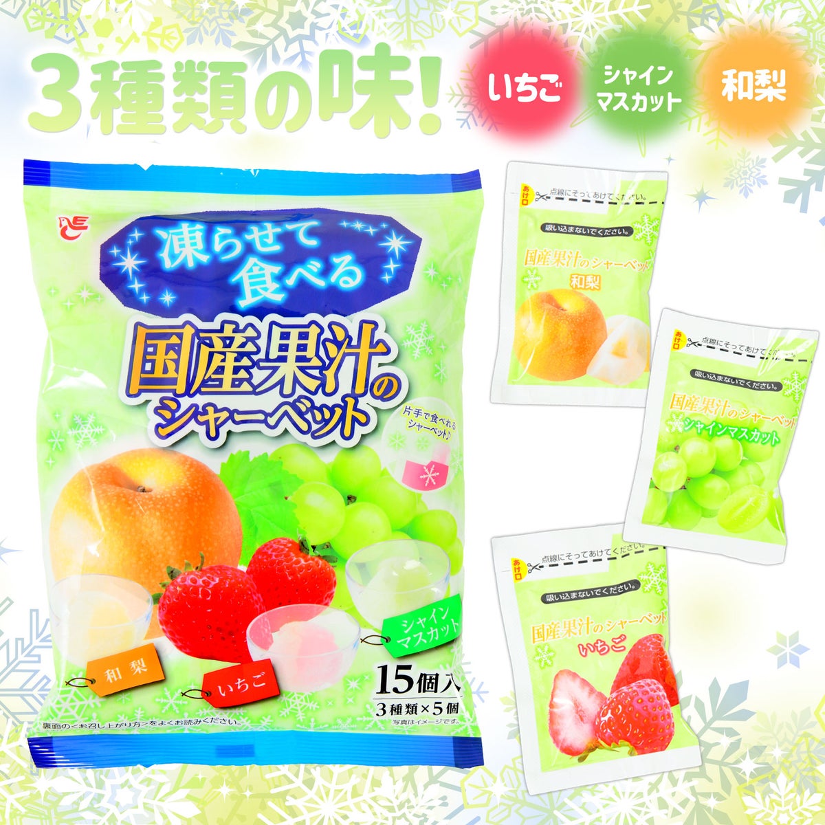 他の画像を見る 1個装あたり約14.5円(15.6円税込)x15個装入=217円(234円税込)りんご・白桃・みかんの国産果汁を使用! エースベーカリー 凍らせて食べる 国産果汁のシャーベット 15個装入 { 駄菓子 お菓子 シャーベット アイス 冷凍 パウチ 国産 果物 フルーツ 果汁 }{ おかし おやつ 景品 お祭り 縁日 子供 まとめ買い 保育園 幼稚園 イベント 配布 }107[26C25][dmo] メーカー希望小売価格 ¥ 324 のところ 当店特別価格 ¥ 234 税込 カートに入れる お気に入りに登録する