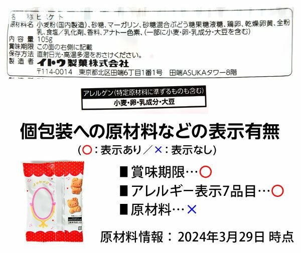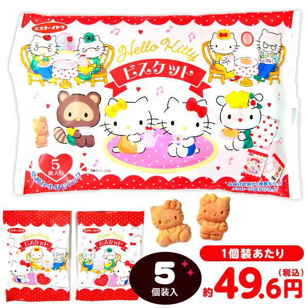 他の画像を見る 1個装あたり46円(49.6円税込)x5個装入=230円(248円税込)便利な小分けパック!キティちゃんのひとくちビスケット イトウ製菓 ハローキティ ビスケット 5個装入 { 駄菓子 お菓子 ビスケット サンリオ 個装 個包装 かわいい 小分け }{ 駄菓子 お菓子 おかし おやつ 景品 お祭り 縁日 問屋 子供 子供会 詰め合わせ 大量 まとめ買い 保育園 幼稚園 パーティー イベント 配布 }[24C20] メーカー希望小売価格 オープン価格 のところ 当店特別価格 ¥ 248 税込 在庫切れ 再入荷お知らせ お気に入りに登録する