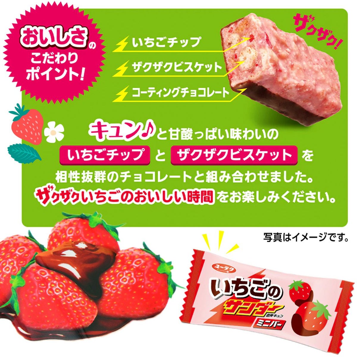 他の画像を見る 甘酸っぱいいちごチョコと ザクザク食感のハーモニー 有楽製菓 ユーラク いちごのサンダー ミニバー 113g { 駄菓子 お菓子 チョコ チョコレート いちご イチゴ ストロベリー }{ おかし おやつ 子供会 景品 問屋 人気 子供 お祭り 縁日 イベント 配布 個装 個包装 }107[25J23][dmo] メーカー希望小売価格 ¥ 324 のところ 当店特別価格 ¥ 275 税込 詳細を見る お気に入りに登録する