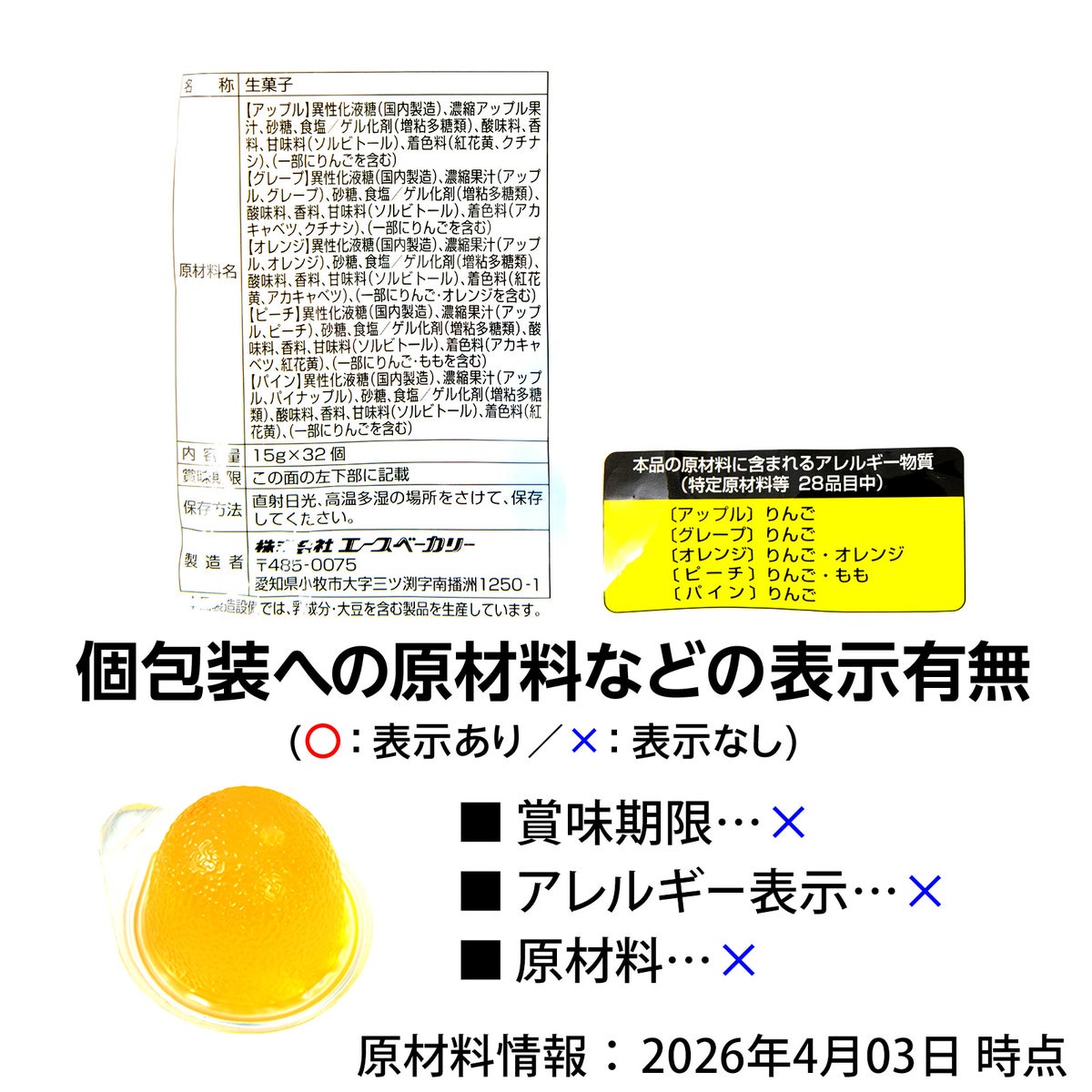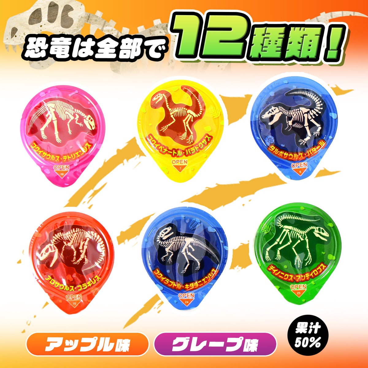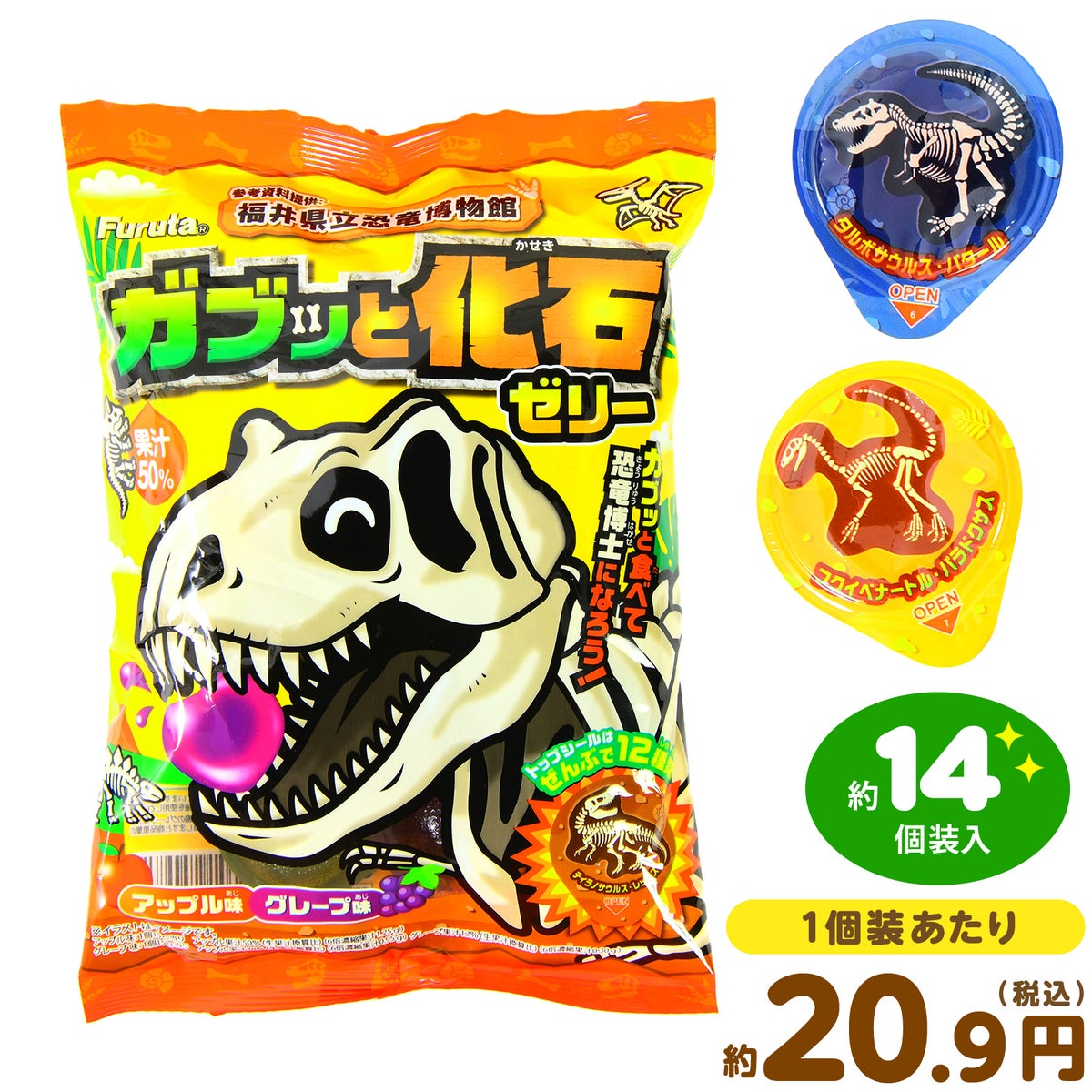 他の画像を見る 1個装あたり約19.3円(約20.9円税込)x約14個装入=270円(292円税込)おやつにやお弁当に添えてもGOOD! フルタ ガブッと 化石 ゼリー 210g(約14個装入) { 駄菓子 お菓子 化石 恐竜 ゼリー }{ おかし おやつ 子供会 景品 子供 お祭り くじ引き 縁日 販促 配布 夏祭り 問屋 パーティー イベント }[26C28][dmo] メーカー希望小売価格 ¥ 378 のところ 当店特別価格 ¥ 292 税込 カートに入れる お気に入りに登録する